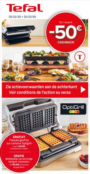 | Tefal Optigrill: Jusqu'à €50 remboursé ou Plaques gaufres gratuit |