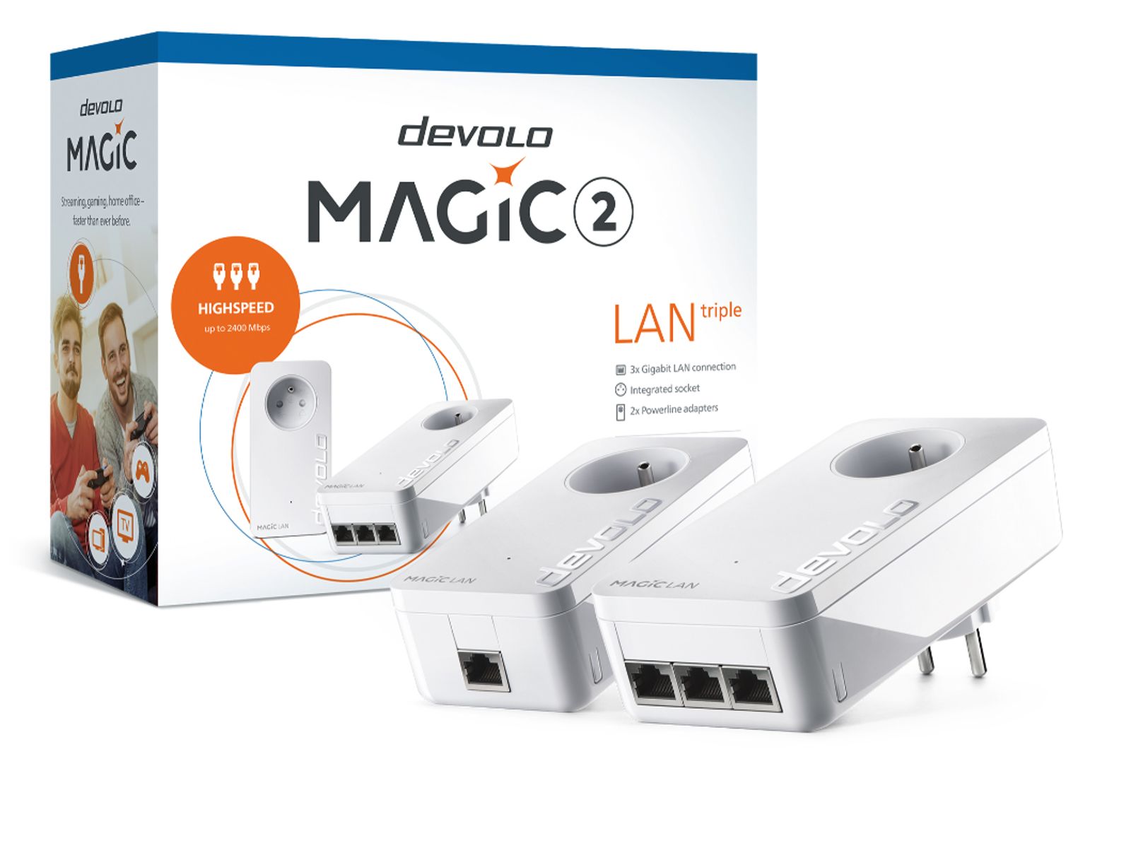 Découvrez la nouvelle navigation infinie - avec le WiFi Mesh de devolo. Magic 2 WiFi permet un flux Internet incroyablement stable et ultra-rapide dans votre maison, jusqu'à 2400 Mbits/s - d'une simplicité phénoménale via les câbles électriques. Regardez les films en streaming UHD fantastique. Profitez de la navigation à haut débit partout chez vous. Voyagez dans des réalités virtuelles, découvrez l'immensité de l'Internet des objets (IoT). Tout est possible, rien n'est impossible - avec le WiFi Mesh magique de devolo.