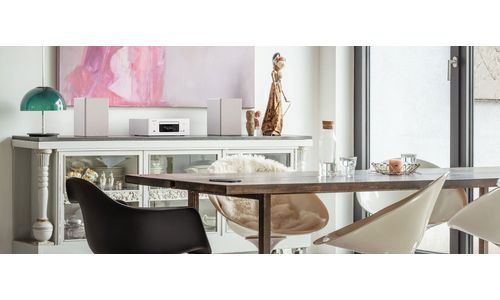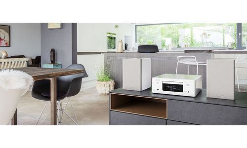 Système audio compact connecté avec lecteur CD, module HEOS intégré et commande vocale Amazon Alexa.