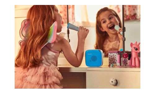 Cette enceinte Bluetooth® ultra-portable est équipée d'un micro sans fil. Les enfants peuvent chanter sur leur musique, raconter des histoires ou même jouer des scènes de films inventées avec leurs amis ! Quel que soit leur choix, la fonction d'enregistrement d'une simple pression sur un bouton leur permet de créer facilement des enregistrements audio sur une carte micro SD.