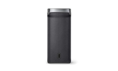 Une charge offre 10 heures d'autonomie, et la portée sans fil est de 20 m. L'enceinte se recharge en 2,5 heures avec le câble USB-C inclus. Les membranes passives produisent des basses puissantes et le son reste limpide, même à volume élevé.