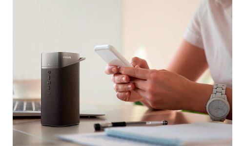 De la musique le matin dans la salle de bain. Des podcasts inspirants au bureau ou chez vous. Avec son design haut de gamme avec finitions en tissus et ses touches de contrôle en relief, le style de cette élégante enceinte Bluetooth® convient à tous les décors. Bénéficiez d'un son particulièrement riche et de 10 heures d'autonomie.