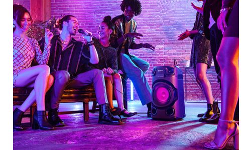 Vibrez au rythme de vos morceaux préférés, même de loin, avec ce puissant système monobloc ou dansez en rythme avec la lumière de l'enceinte MHC-V13