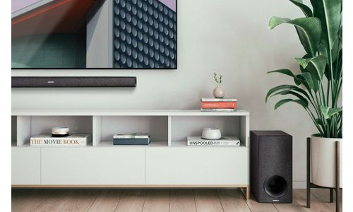 Deux haut-parleurs milieu de gamme, des haut-parleurs d’aigus nets et détaillés et le son Dolby et DTS intégrés dans une barre basse magnifient votre son.
