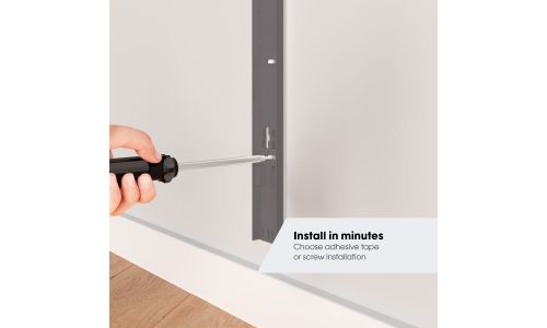 Facile à couper en hauteur ou en biais, de sorte que vous pouvez monter le conduit de câbles sur la plinthe. Le chemin de câbles peut être fixé rapidement et facilement de 2 manières : avec du ruban adhésif double face ou des vis. La gouttière peut être peinte pour correspondre à la couleur de votre mur.