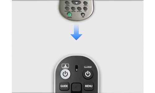 La configuration peut être effectuée facilement à l'aide de codes de marque. De plus, vous pouvez simplement utiliser la fonction d'apprentissage pour personnaliser entièrement cette télécommande en toute simplicité, en copiant les fonctions directement à partir de votre télécommande d'origine.