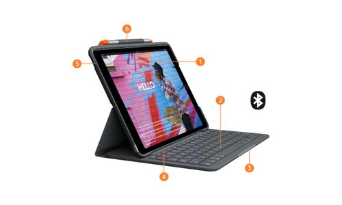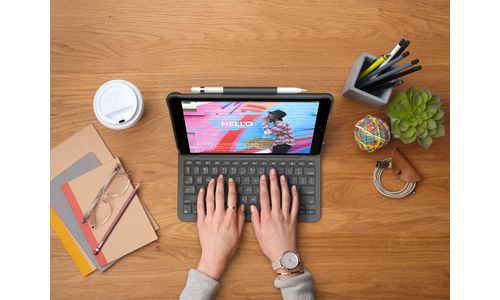 Transformez votre iPad en ordinateur portable en un clic. Les touches bien espacées et les raccourcis iOS permettent un confort et une rapidité de frappe. Slim Folio verrouille votre iPad à un angle idéal pour une saisie sur toutes les surfaces, qu'il s'agisse de votre bureau ou de vos genoux. Sa conception fine s'adapte parfaitement et protège l'iPad contre les chocs, rayures et projections. Avec sa configuration aisée, sa connexion Bluetooth LE fiable sans fil et son autonomie longue durée, Slim Folio est un outil indispensable pour l'iPad.