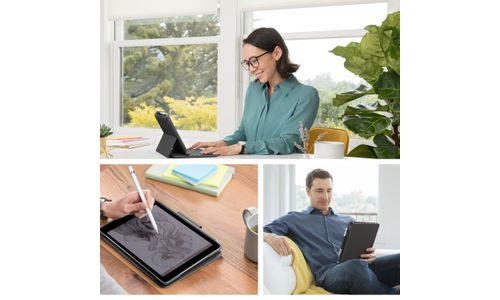 Slim Folio verrouille votre iPad à un angle idéal pour une saisie ou le dessin sur toutes les surfaces, qu'il s'agisse de votre bureau ou de vos genoux.