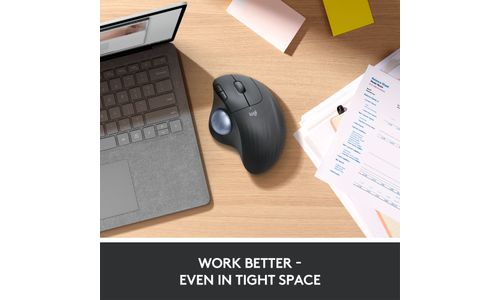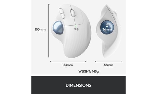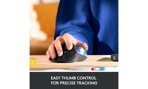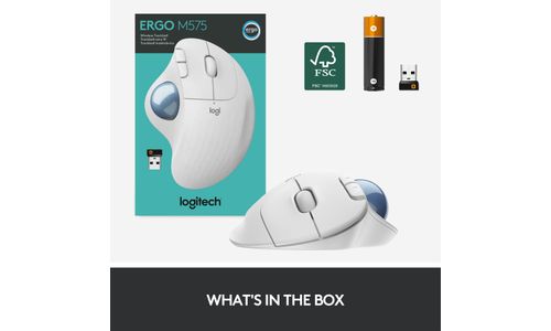 Logitech ERGO M575 Trackball Découvrez ERGO M575, un trackball sans fil avec contrôle facile par le pouce. Oubliez les déplacements incessants de la souris ou de votre bras pour déplacer le curseur. La forme ergonomique profilée de la souris trackball ERGO M575 minimise les mouvements et maximise le confort tout en gardant votre main et votre bras détendus, ce qui en fait la souris idéale pour les espaces de travail exigus et les bureaux encombrés. Avec ses deux modes de connexion (via Bluetooth® Low Energy ou le récepteur USB), le trackball vous offre un signal puissant et stable à 10 mètres de distance. Une seule pile AA dure jusqu’à 24 mois avec le récepteur USB Unifying inclus et jusqu’à 20 mois via Bluetooth® Low Energy. La portée sans fil et l'autonomie sont susceptibles de varier en fonction de l'utilisateur et du mode d'utilisation. Design ergonomique et confortable: la forme de la souris s'adapte parfaitement à votre main et permet de réduire efficacement la pression exercée sur le bras et la main Profitez d'un contrôle et d'un suivi précis sur tout type de surface grâce au trackball. Modifiez la vitesse et la précision de votre curseur avec le logiciel Logitech Options Économisez de l’espace : parce que le trackball n’a pas besoin d’être déplacé, il est idéal pour les espaces de travail réduits et se niche discrètement à côté de votre ordinateur Double connectivité et multi-OS : connectez le trackball via Bluetooth ou en utilisant le récepteur USB sans vous soucier des possibles chutes grâce à sa portée sans fil de 10 m Fabriqué partiellement à partir de plastique recyclé : la M575 utilise 50% de plastique recyclé pour le graphite/noir et 21% pour le blanc cassé. L’emballage contient du papier certifié FSC Jusqu'à 24 mois d’utilisation avec une seule pile AA et un récepteur USB. Vous irez jusqu'à oublier que votre souris sans fil Logitech M575 consomme de la batterie Contrôle du bout des doigts : surfer sur le web ou parcourir vos documents n'a jamais été aussi facile avec la très précise roulette de défilement et les boutons précédent/suivant