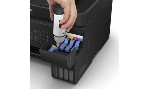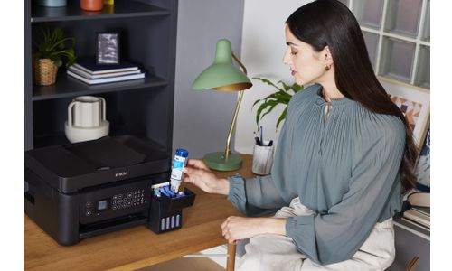 EcoTank offre une impression simple aux particuliers et aux petites entreprises : les réservoirs d’encre ultra haute capacité permettent des recharges faciles et les bouteilles sont dotées d’un détrompeur pour ne plus se tromper de couleur en remplissant le réservoir.