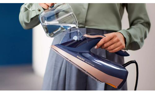 Repassage puissant avec notre nouvelle série Philips Azur 8000. Avec 260 g de vapeur turbo, même les plis les plus tenaces peuvent désormais être éliminés dès le premier passage. Grâce à la puissance de 3 000 W, vous pouvez démarrer immédiatement et obtenir des résultats parfaits avec une production de vapeur forte et homogène