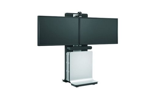 Outre les vidéoconférences, ce meuble s'utilise aussi idéalement comme kiosque avec un écran en position portrait ou comme support d'écran de luxe dans lequel on peut ranger des périphériques.