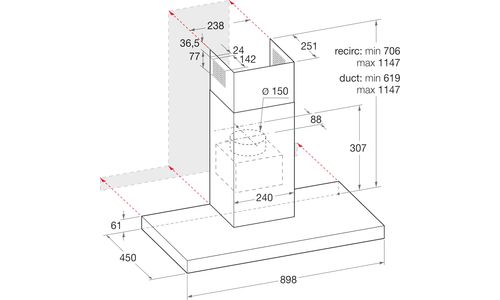 Hotte aspirante murale T-Box, 90cm, 735 m³/h, 72 dB(A), LED, B, 250 W, boutons de commande rétroéclairés, acier inoxydable