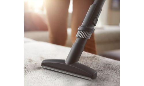 La brosse douce intégrée est intégrée au manche afin qu'elle soit toujours prête à être utilisée sur les meubles, les surfaces planes et les tissus d'ameublement. La buse pour meubles est conçue pour un nettoyage optimal des meubles rembourrés tels que les coussins et les canapés. Vous pouvez même éliminer les poils d’animaux avec.