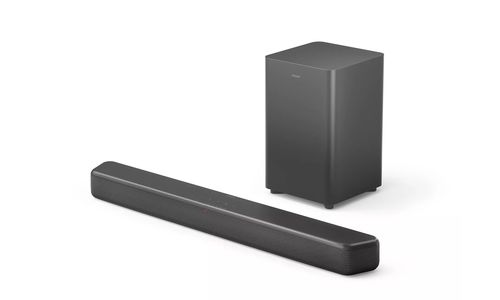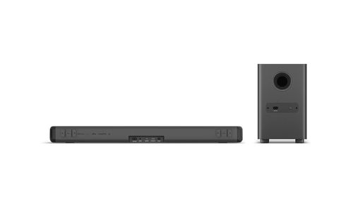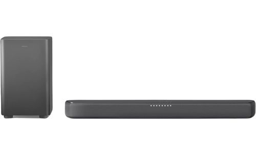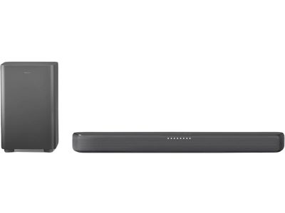 Les canaux 2.1 de cette petite barre de son et la technologie audio font passer votre expérience sonore à un niveau supérieur. Le caisson de basses sans fil, également compact, donne un poids supplémentaire aux effets et à la musique. Quatre modes EQ vous permettent de choisir un style sonore adapté à ce que vous regardez. Les voix deviennent plus claires dans n'importe quel mode si vous activez l'amélioration de la voix.