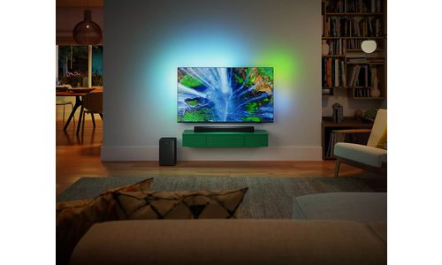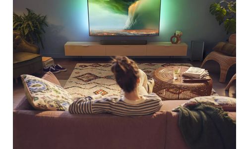 La compatibilité avec DTS Virtual:X transforme le son de votre téléviseur et vous offre une expérience sonore virtuelle en 3D, peu importe ce qui est à l'écran ! Vous n'avez pas besoin de haut-parleurs supplémentaires et il fonctionne dans n'importe quelle pièce : allumez-le via la télécommande de la barre de son ou l'application Philips Home Entertainment.