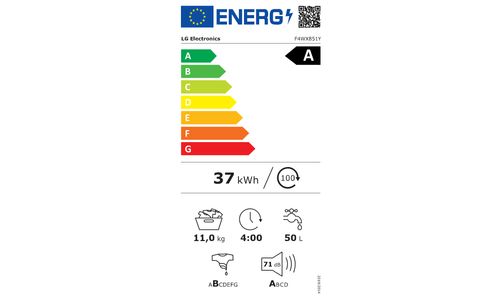 *Testé par Intertek, selon la norme CEI 60456 : Édition 5.0. Cycle TurboWash39 avec une charge CEI de 5 kg comparé au cycle coton classique avec TurboWash (F4V9RWP2W vs. FC1450S2W).