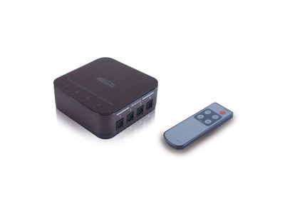 De optisch (Toslink) digitale audio switcher schakelt vier optisch digitale ingangen naar één uitgang zonder vertraging of verlies van kwaliteit.