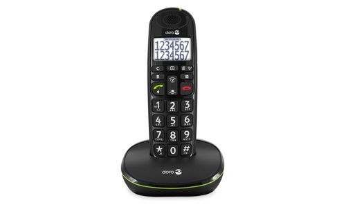 Doro PhoneEasy® 110 is een zeer gemakkelijk te lezen draadloze telefoon, dankzij het verlichte scherm met ultrahoog contrast dat de volledige namen en nummers weergeeft, zonder rollende tekst. Met de grote, sprekende cijfertoetsen wordt het gemakkelijker om nummers te kiezen en de Doro TrueSound kwaliteit garandeert een goed, helder geluid voor aangenamere gesprekken. Heeft ook een luidspreker met hoog volume.