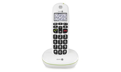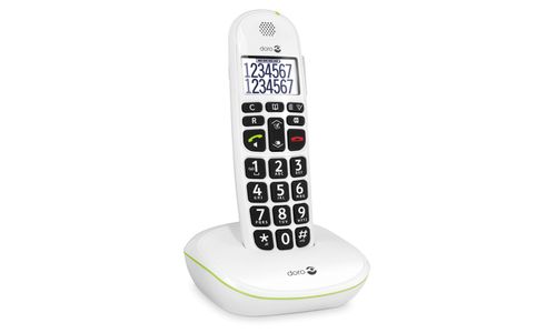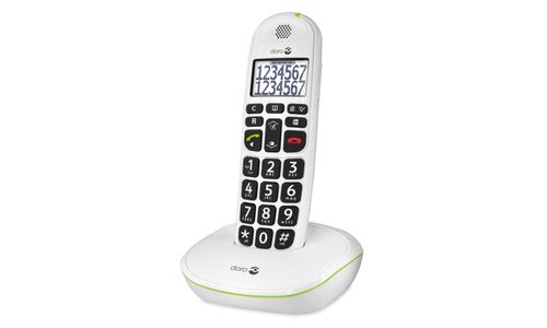Doro PhoneEasy® 110 is een zeer gemakkelijk te lezen draadloze telefoon, dankzij het verlichte scherm met ultrahoog contrast dat de volledige namen en nummers weergeeft, zonder rollende tekst. Met de grote, sprekende cijfertoetsen wordt het gemakkelijker om nummers te kiezen en de Doro TrueSound kwaliteit garandeert een goed, helder geluid voor aangenamere gesprekken. Heeft ook een luidspreker met hoog volume.
