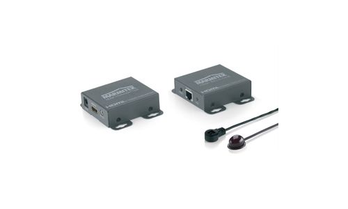 HDMI verlenging over één CAT5 kabel, incl. infrarood retoursignaal.