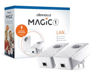 Verbluffend eenvoudig en ongelooflijk krachtig – de devolo Magic 1 LAN Powerline-adapter voorziet u van sprookjesachtig internet voor het hele huis, eenvoudig en snel via het stopcontact. Dankzij het verrassende bereik van 400 meter biedt de revolutionaire dLAN-adapter nieuwe mogelijkheden voor ruimtes die eerder geen internetverbinding hadden: online gamen op het terras, YouTube-filmpjes streamen in de werkplaats en een kantoor op zolder – de mogelijkheden zijn oneindig. Steek de devolo Magic 1 LAN simpelweg in het stopcontact en verbind hem met de andere Magic-adapters. De slimme Plug & Play-functie voltooit de configuratie binnen enkele seconden. Het resultaat: de Powerline-adapter biedt een sprookjesachtige internetverbinding met een hoge snelheid van 1200 Mbp, overal in huis.