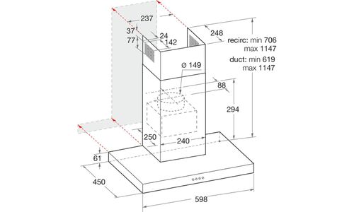 Apparaat minder dan 60 cm breed. Vaatwasserbestendige vetfilters in aluminium. Bijzonder efficiënte S40HE-motor. LED-verlichting voor een ideale verlichting. Geschikt voor afvoer en recirculatie.