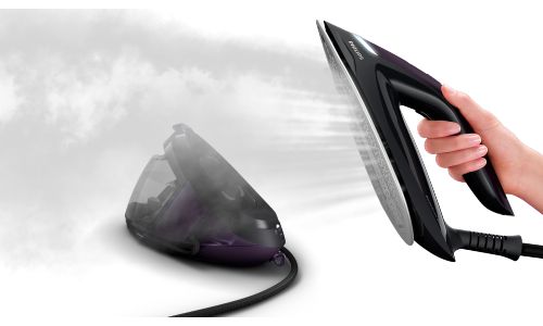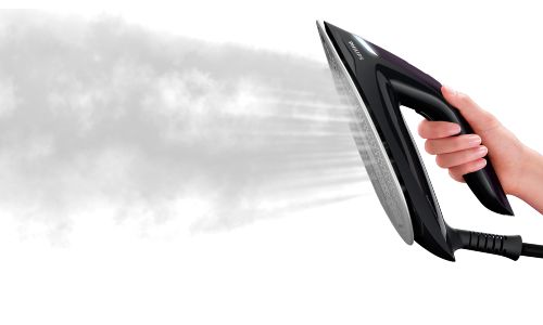 Strijk sneller met de nieuwe snelheidsmodus, waarmee het strijkijzer zich automatisch aanpast en stoom afgeeft op basis van de snelheid waarmee u het over kledingstukken beweegt. Hoe sneller u het strijkijzer beweegt, hoe meer stoom het strijkijzer afgeeft.