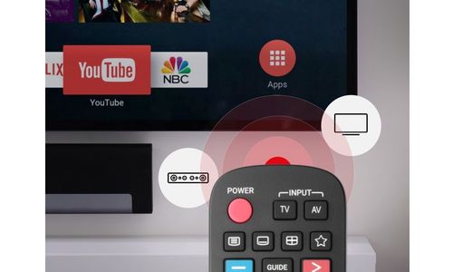 Regel het volume (en demp) van uw Soundbar/Audio Receiver dankzij de nieuwe Audio Feature, stel de afstandsbediening in om uw TV en Soundbar/Audio-apparaat te bedienen alsof ze één zijn! Leerfunctie