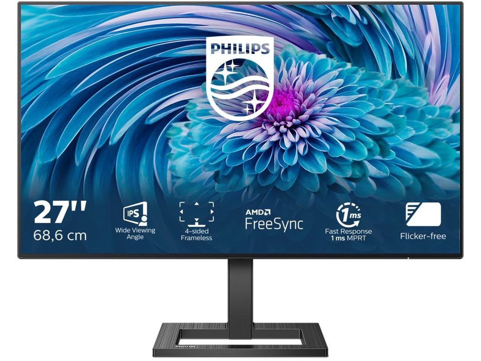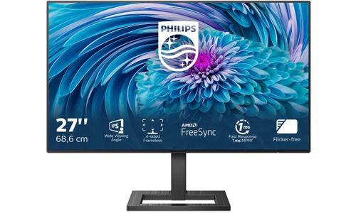 Philips 272E2FA/00. Beeldschermdiagonaal: 68,6 cm (27"), Resolutie: 1920 x 1080 Pixels, HD type: Full HD, Display technologie: LCD, Responstijd: 4 ms, Oorspronkelijke beeldverhouding: 16:9, Kijkhoek, horizontaal: 178°, Kijkhoek, verticaal: 178°. Ingebouwde luidsprekers. VESA-montage. Kleur van het product: Zwart