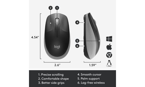 Logitech M190 Full-Size Wireless Mouse Grey