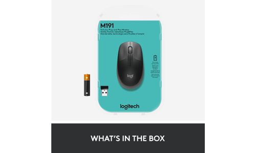 Logitech M190 draadloze muis van normaal formaat De Logitech M190 is een draadloze muis van groot formaat met een gerond ontwerp dat de natuurlijke boog van middelgrote tot grote handen volgt. De gebogen handpalmondersteuning en speciale concave toetsen voor ideale plaatsing van de vingers bieden comfort de hele dag door. Werk draadloos en beweeg je vrij rond binnen een bereik van 10 meter, vrijwel zonder vertragingen of uitval. Geen kabels betekent een opgeruimd bureau en dankzij de batterijlevensduur van 18 maanden kun je zorgeloos werken; de energiebesparingsmodus wordt automatisch ingeschakeld wanneer je de muis niet gebruikt. Je profiteert van uitstekende navigatie met nauwkeurige tracking en accuraat regel voor regel scrollen tegen een betaalbare prijs.