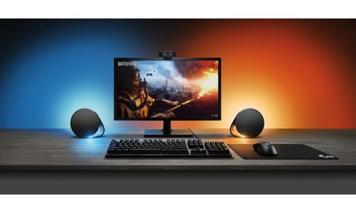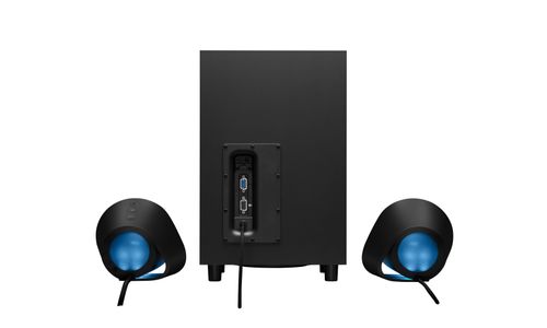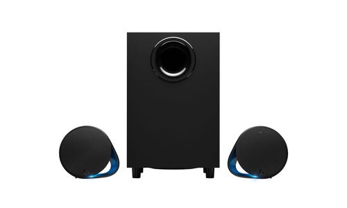 Logitech G560. Audio-uitgangskanalen: 2.1 kanalen, Gemiddeld vermogen: 120 W, Aanbevolen gebruik: PC/notebook. Satellite speaker afmetingen (WxDxH): 166 x 118 x 148 mm, Satellite speaker gewicht: 1,79 kg. Subwoofer afmetingen (WxDxH): 255 x 207 x 404 mm, Gewicht subwoofer: 5,5 kg. Stroombron: AC. Meegeleverde kabels: USB