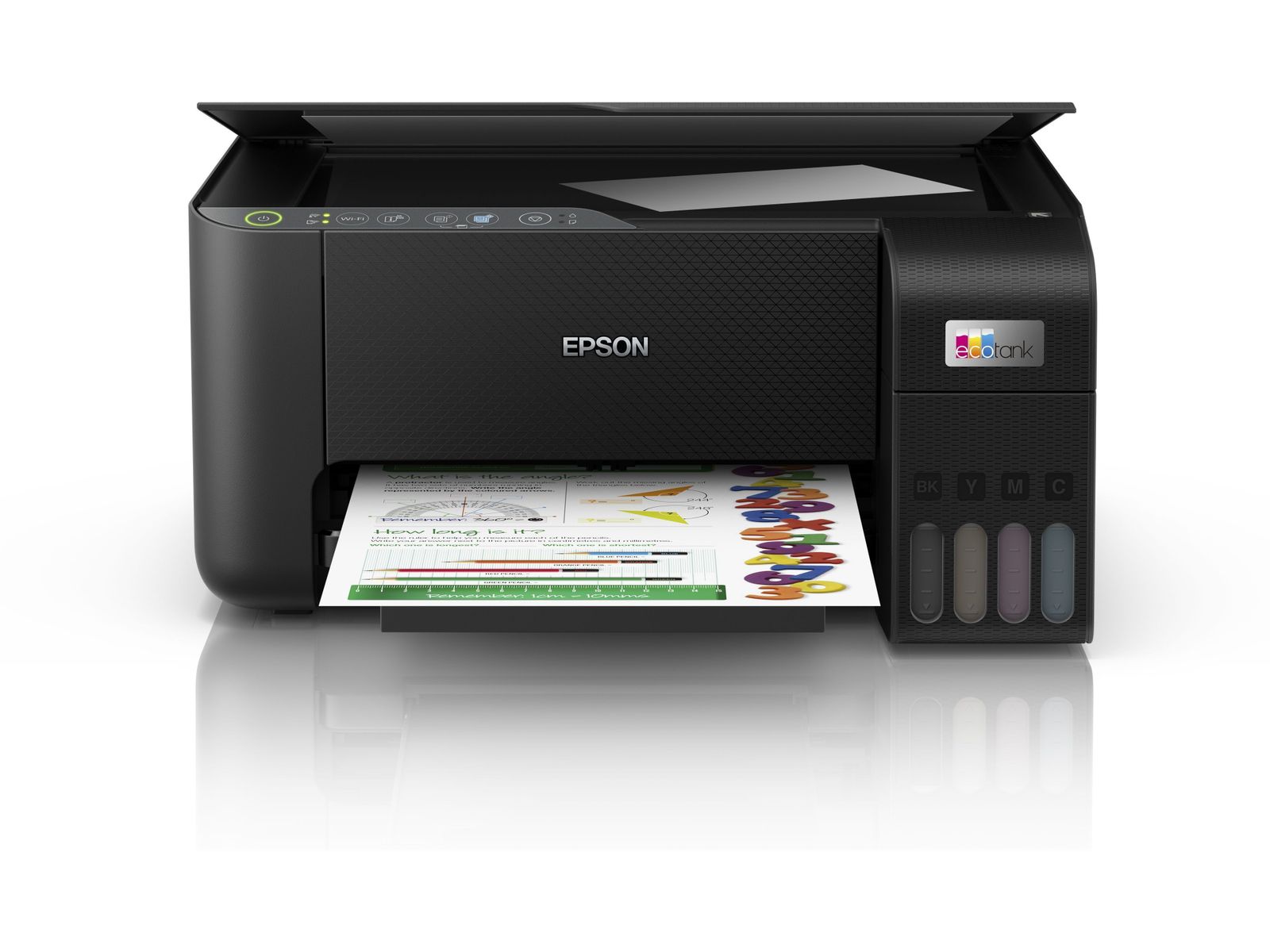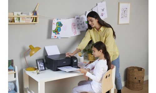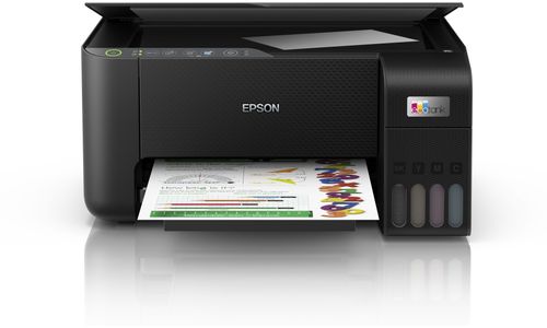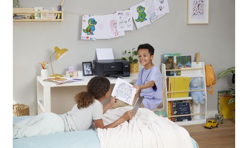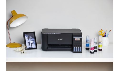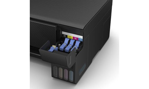 Cartridges behoren tot het verleden Met EcoTank kunt u probleemloos thuis printen. U kunt de inkttanks met zeer hoge capaciteit zonder knoeien bijvullen en de flessen hebben een speciale sluiting waardoor ze alleen op de juiste kleur kunnen worden gebruikt. Op het inktniveauscherm aan de voorzijde kunt u eenvoudig zien wanneer de tank moet worden bijgevuld.