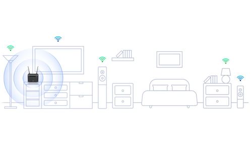 De router werkt tegelijkertijd op de 2,4 GHz en 5 GHz draadloze banden door de gelijktijdige dual-band technologie.