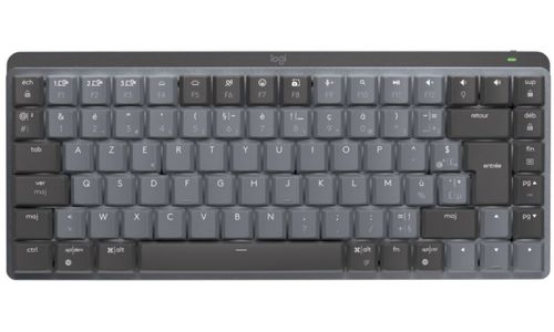 Logitech MX Mini Mechanical. Toetsenbord formaat: Tenkeyless/toetsenbord zonder numeriek toetsenblok (80 - 87%). Stijl toetsenbord: Recht. Aansluiting: RF-draadloos + Bluetooth, Toetsenbord toetsschakelaar: Mechanische keyswitch, Toetsenbordindeling: AZERTY. Backlight type: LED. Snoerlengte: 1 m. Aanbevolen gebruik: Kantoor. Kleur van het product: Grafiet, Grijs