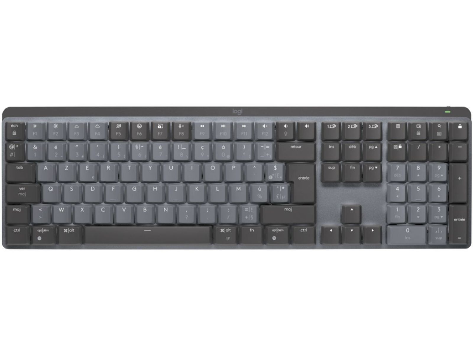 Logitech MX Mechanical. Toetsenbord formaat: Volledige grootte (100%). Stijl toetsenbord: Recht. Aansluiting: RF-draadloos + Bluetooth, Toetsenbord toetsschakelaar: Mechanische keyswitch, Toetsenbordindeling: AZERTY. Backlight type: LED. Snoerlengte: 1 m. Aanbevolen gebruik: Kantoor. Kleur van het product: Grafiet, Grijs