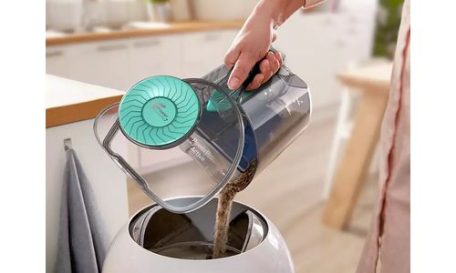 De stofbak is zo ontworpen dat deze eenvoudig en hygiënisch kan worden verwijderd en geleegd met één hand, om stofwolken te minimaliseren.