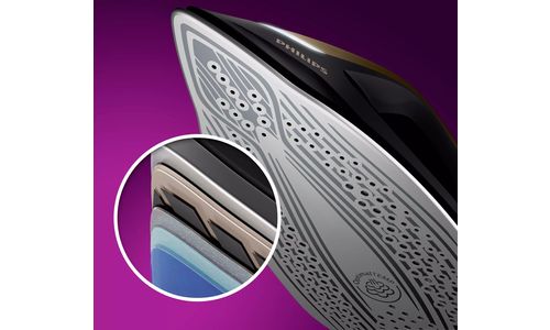 De SteamGlide Elite-zoolplaat is onze beste zoolplaat voor ultieme strijkprestaties en maximale krasbestendigheid. De roestvrijstalen voet is twee keer zo hard als een gewone aluminium voet en dankzij onze gepatenteerde 6-laagse coating met geavanceerde titaniumlaag glijdt het apparaat uiterst soepel voor het snelste resultaat.