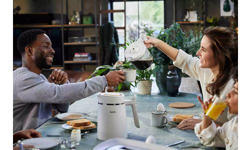 Het slimme mondstuk in de kan verspreidt de verse koffie door de kan voor een optimaal en consistent aroma, van het eerste tot het laatste kopje koffie.
