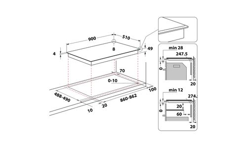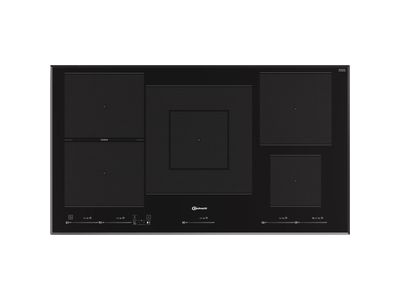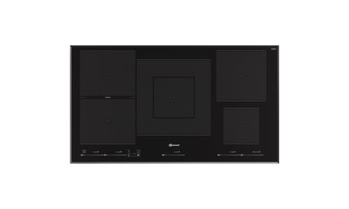 Inductiekookplaat, 90 cm,5 zones (1 dual + 2 flexi + 2 x single zone ), 5 boosters, timer,kinderslot, tiptoetsbediening met premium slider, 4 zijden afgeschuind