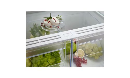 De groentelade in deze koelkast is voorzien van speciaal ontworpen ventilatieroosters voor de regeling van de luchtvochtigheid, zodat de interne luchtvochtigheid nauwkeurig kan worden aangepast. Groenten en fruit kunnen zo bewaard worden in de juiste luchtvochtigheid.