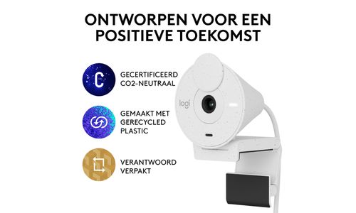 Logitech Brio 300. Megapixels: 2 MP, Maximale videoresolutie: 1920 x 1080 Pixels, Camera HD-type: Full HD. Interface: USB-C, Kleur van het product: Wit, Montagewijze: Clip. Ondersteunt Windows: Windows 10, Windows 11, Windows 8, Windows 8.1, Ondersteunt Mac-besturingssysteem: Mac OS X 10.10 Yosemite, Mac OS X 10.11 El Capitan, Mac OS X 10.12 Sierra, Mac OS X 10.13 High..., Andere ondersteundende systemen: ChromeOS. Duurzaamheidscertificaten: CarbonNeutral, Forest Stewardship Council (FSC). Breedte: 53,1 mm, Diepte: 45 mm, Hoogte: 65,6 mm