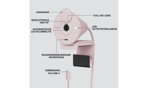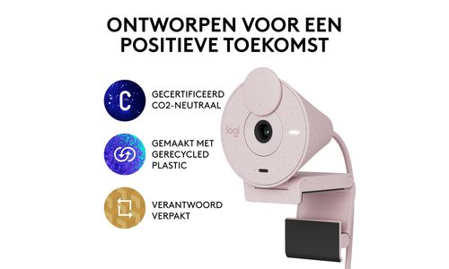 Logitech Brio 300. Megapixels: 2 MP, Maximale videoresolutie: 1920 x 1080 Pixels, Camera HD-type: Full HD. Interface: USB-C, Kleur van het product: Roze, Montagewijze: Clip. Ondersteunt Windows: Windows 10, Windows 11, Windows 8, Windows 8.1, Ondersteunt Mac-besturingssysteem: Mac OS X 10.10 Yosemite, Mac OS X 10.11 El Capitan, Mac OS X 10.12 Sierra, Mac OS X 10.13 High..., Andere ondersteundende systemen: ChromeOS. Duurzaamheidscertificaten: CarbonNeutral, Forest Stewardship Council (FSC). Breedte: 53,1 mm, Diepte: 45 mm, Hoogte: 65,6 mm
