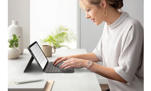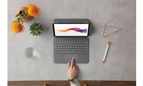 Logitech Folio Touch. Toetsenbordindeling: AZERTY, Taal toetsenbord: Frans, Aanwijsapparaat: Trackpad. Merkcompatibiliteit: Apple, Compatibiliteit: iPad Air (4th gen, 5th gen), Kleur van het product: Grijs. Connectiviteitstechnologie: Draadloos, Aansluiting: Smart Connector. Stroombron: Dock. Ondersteunde mobiele besturingssystemen: iPadOS
