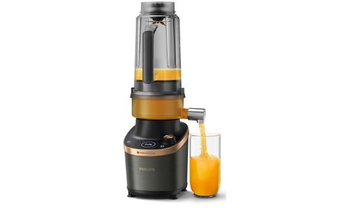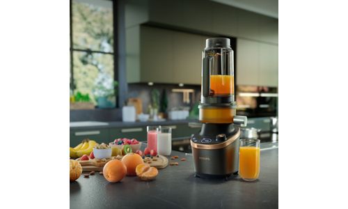De nieuwe Philips Flip & Juice-blender is onze eerste high-speed blender met sapmodule. Dankzij het revolutionaire ontwerp van de kan en het geïntegreerde filter krijgt u uw drankje met een structuur die is aangepast aan de voorkeuren van uw gezin. Van perfect zijdezachte smoothies tot heldere of troebele sappen, onze meest geavanceerde blender biedt de grootste variatie. Het combineert blenden en sap persen in één oplossing en bespaart ruimte in uw keuken.