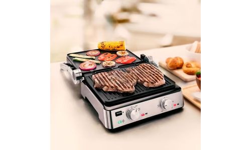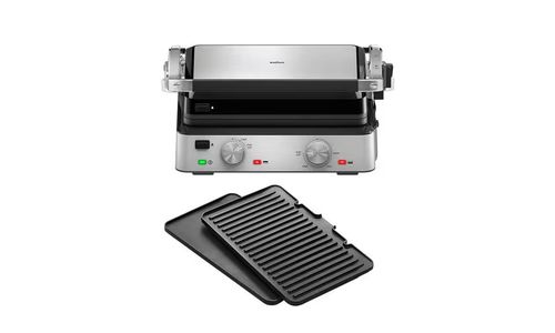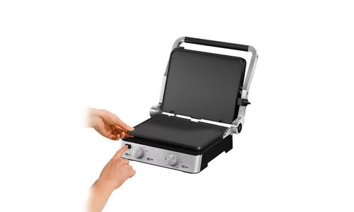 Met de twee onafhankelijke thermostaten kan je de temperatuur van elke plaat aanpassen zodat je tegelijkertijd twee gerechten op verschillende temperaturen kan bereiden.