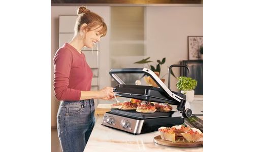 Geniet van heerlijk grillen voor ontbijt, lunch, diner en snacks. Je zal dol zijn op de veelzijdigheid dankzij de (slimme) combinatie van drie soorten kookplaten en drie kookstanden. De MultiGrill 7 biedt je twee flexibele kookoppervlakken zodat je heerlijke maaltijden voor 6 personen kunt bereiden. Groenten, vlees, vis of lekkere bruschetta - jij beslist. Geniet van 2000 watt vermogen voor snelle opwarming en uitstekende grillresultaten, en profiteer van geïntegreerde verwarmingselementen voor nog sneller en gelijkmatiger koken.