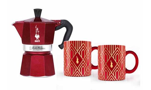 Deco Glamour Moka Express 6tz + 2 X Mug 33cl Rood
