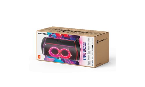 De JBL PartyBox Ultimate vult elke ruimte met superieur Original JBL Pro Sound, versterkt met een geweldige Dolby Atmos-ervaring via wifi*. Want iedereen op een feestje houdt van krachtig geluid, zowel op als om de dansvloer. Naast geluid dat zelfs op zijn hardst kristalhelder is, zullen je gasten genieten van een enorme, adembenemende lichtshow van boeiende sterrenlichten, coole lichtsporen en stroboscoopeffecten, die allemaal synchroon bewegen met je beat. Maak het makkelijk door je favoriete afspeellijst voor feestjes te streamen. Gebruik hem zelfs op het podium, met input voor twee microfoons en een gitaar. Wat er ook gebeurt, je kunt je eigen partyflow creëren met behulp van de leuke interactieve effecten van de JBL PartyPad™. Nog iets groters aan het plannen? Maak van je party een echt event. Draadloze pairing en verbinden met meerdere luidsprekers zijn eenvoudig in te stellen en aan te passen met de JBL One-app. De spatwaterdichte JBL PartyBox Ultimate stemt zichzelf af en klinkt overal op z'n best. Denk aan de meest geweldige party ooit - maar dan groter. Daar is de JBL PartyBox Ultimate voor gemaakt.a
